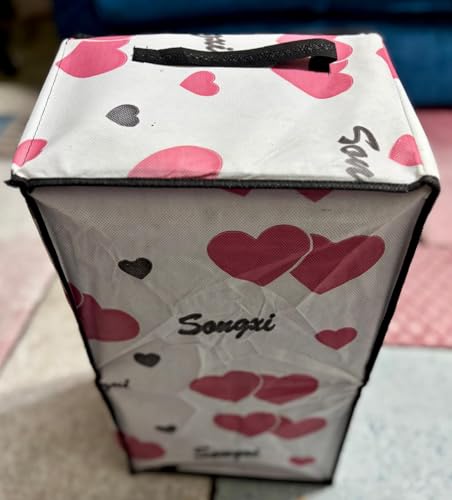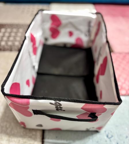 • تصميم عصري وأنيق: صندوق تخزين قابل للطي بنمط قلوب وردية وسوداء جذاب يضيف لمسة جمالية لأي غرفة في المنزل