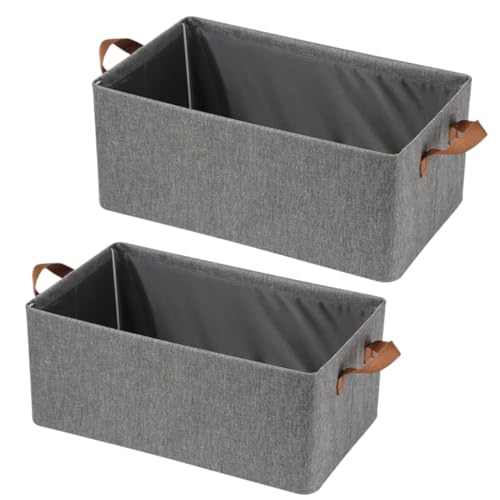 Generic - صندوق تخزين قابل للطي باطار من الستيل، قماش رمادي، سعة 26 لتر، منظم مستطيل مع مقابض جلدية للملابس، ارفف خزانة الملابس، مجموعة من قطعتين