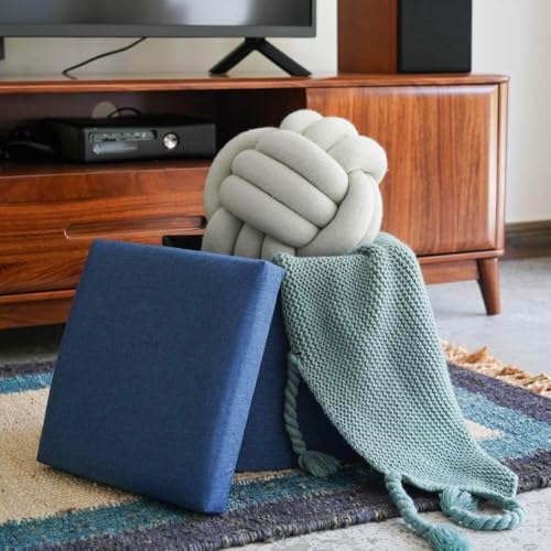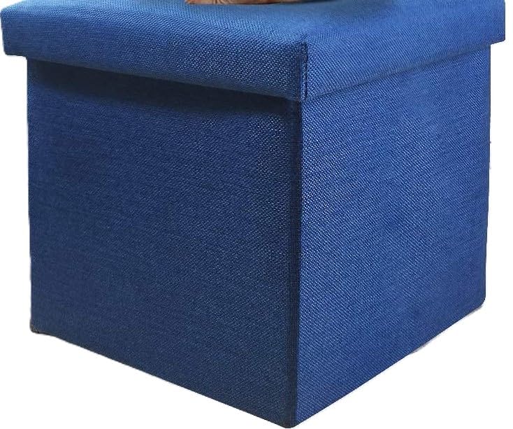 Generic - صندوق تخزين على شكل مكعب قابل للطي بنمط عثماني، مقعد متعدد الاستخدامات، مسند قدم، كرسي وصندوق تخزين، تصميم أنيق وصغير للمكتب أو المنزل، مقاس 25 × 25 × 25 سم، لون أزرق