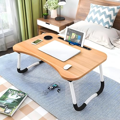 - مكتب لاب توب قابل للطي مصنوع من خشب الجوز يعمل كصينية سرير لأجهزة اللاب توب ويمكن استخدامه كسطح محمول مع حامل أكواب مدمج، مصمم للاستخدام على السرير أو الأريكة أو منطقة تناول الطعام؛ يمكن طيه بشكل مسطح للتخزين المدمج ويدعم تناول الطعام والكتابة والعمل بشكل مريح في أماكن الاسترخاء.