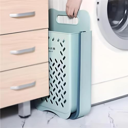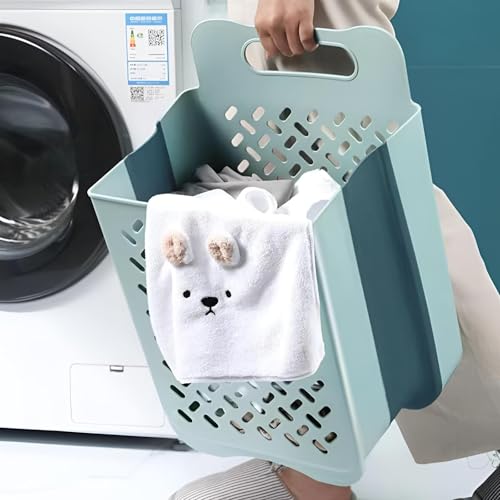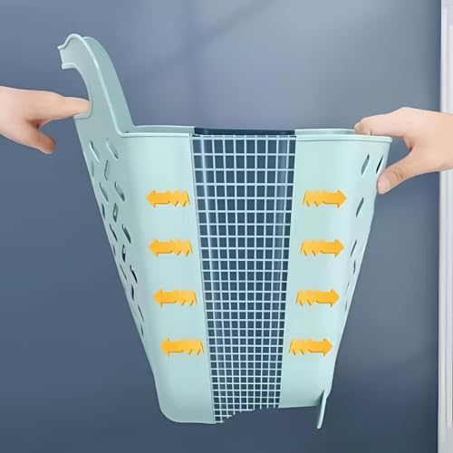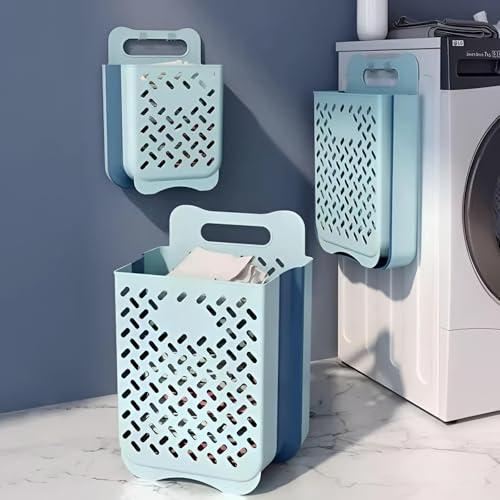 Generic - سلة حائط قابلة للطي - تخزين غسيل من البلاستيك والسيليكون ازرق موفر للمساحة مع مقبض قوي وخطاف تثبيت لاصق، مثالية للمنازل والشقق الصغيرة.