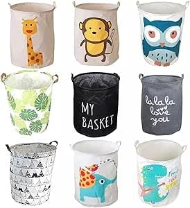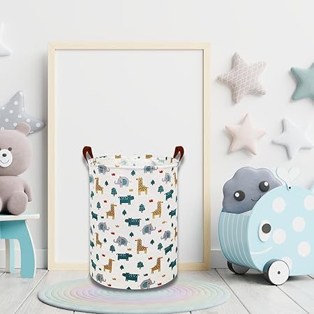 Generic - سلة غسيل قابلة للطي ومقاومة للماء مع مقابض للحمام وغرفة النوم - سلة دائرية قابلة للطي من الخيزران - مثالية للملابس والالعاب والمناشف (تصميمات متنوعة)