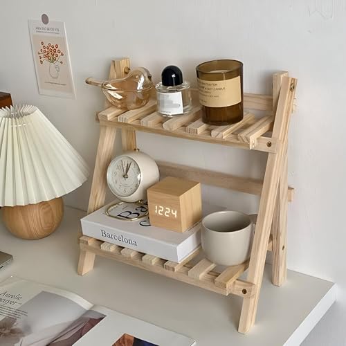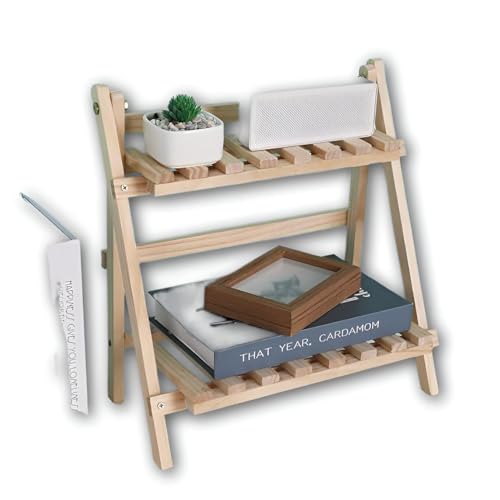 Generic - رف خشبي قابل للطي - منظم سلم قابل للتعديل بمستويين للتوابل والاعشاب والزهور ومستلزمات الحمام مع هيكل خفيف الوزن ومتين.