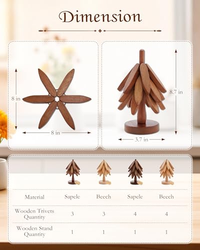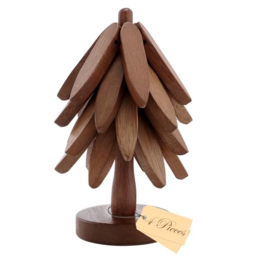 ATLIKE - مجموعة حوامل شجرة خشبية قابلة للطي، موفرة للمساحة، تصميم متين - لا حاجة لتغيير الادوات بشكل متكرر، اداة الكل في واحد، تعزز طقوس المعيشة اليومية، 4 قطع من خشب الجوز + حامل للشابات والمستأجرات
