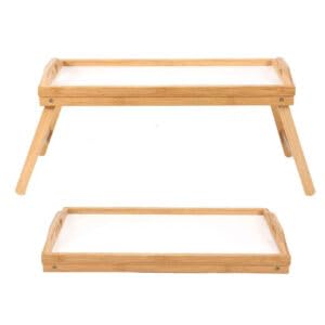Generic - طاولة سرير جانبية قابلة للطي بمقبض للحمل وتقديم الطعام، مصنوعة من الخشب والأكريليك (24 × 30 × 50 سم)