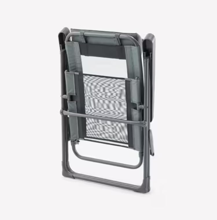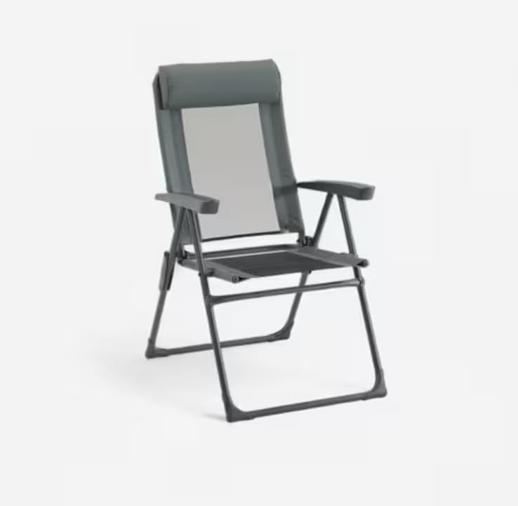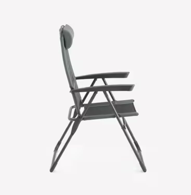 Generic - كرسي تخييم قابل للطي بظهر مرتفع مع أوضاع إمالة قابلة للتعديل بإطار معدني رمادي بتصميم سهل الحمل للاستخدام الخارجي