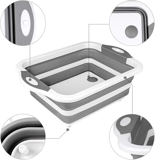 - موفر للمساحة وسهل الاستخدام - اضغط على المنتصف باليد وأمسك الإطار بيد أخرى، افتح حوض الأطباق وابدأ في الغسيل والتصريف باستخدام القابس المدمج. يمكن وضع الحوامل الخاصة غير القابلة للانزلاق في أي مكان حتى على السطح الأملس. يمكن طيها ثم تقطيع الطعام على اللوح بحرية، يمكن أن يوفر التصميم القابل للطي مساحة كبيرة وسهل التنظيف.