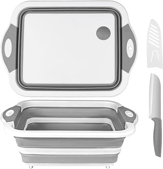 Generic - لوح تقطيع قابل للطي - حوض مطبخ متعدد الوظائف موفر للمساحة وحوض تخييم - سلة تخزين امنة غذائيا لغسل وتصريف الخضروات والفواكه والنزهات والشواء والتخييم