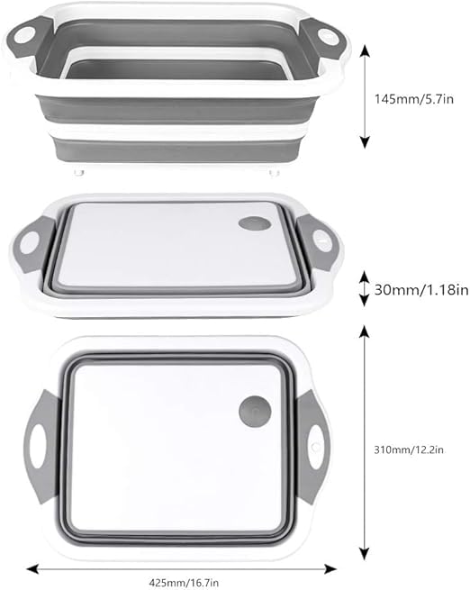 - 3 في 1 متعدد الوظائف - يأتي هذا المنتج مع سكين إضافي يعمل بشكل مثالي في تقطيع/تقطيع الخضروات والفواكه واللحوم وغسل الأطباق أو الطعام كحوض أطباق قابل للطي، كما يمكن أن يكون سلة تخزين لتخزين أنواع الطعام والمشروبات المثلجة في الخزانة أو الثلاجة.