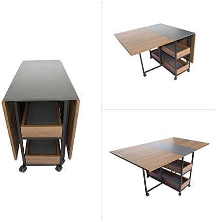 Generic - طاولة طعام قابلة للطي مع ارفف تخزين وعجلات من ام ايه ستيل - مكتب متعدد الوظائف موفر للمساحة للمطبخ وغرفة المعيشة والمساحات الصغيرة - تصميم من الخشب الصناعي والمعدن