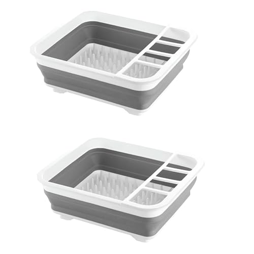 Generic - غسالة أطباق قابلة للطي - رف تجفيف أطباق مدمج، غسالة أطباق محمولة ودرج تخزين لتوفير مساحة في المطبخ (2 قطعة)