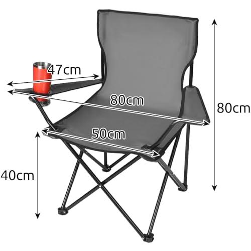 TRIZAND - كرسي صيد وتخييم قابل للطي من تريزاند - مزوّد بمساند للذراعين وحامل أكواب، يتحمل وزنًا يصل إلى 100 كجم، قابل للطي ويأتي مع شنطة حمل - أسود/رمادي/أخضر 23675، اللون: رمادي