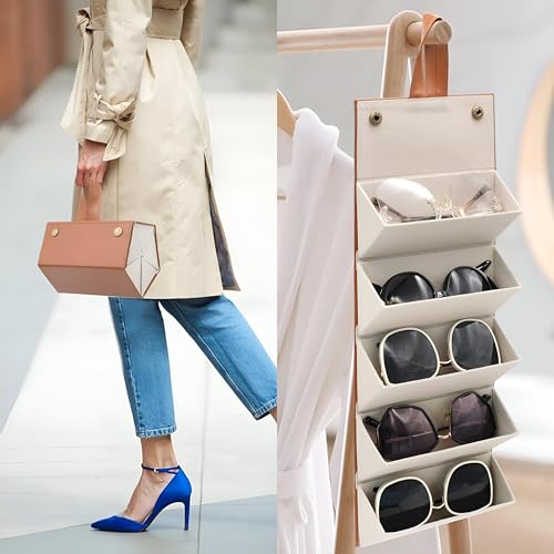 Generic - حقيبة نظارات قابلة للطي - صندوق تخزين النظارات الشمسية صغير وأنيق مع 5 مساحات تخزين، مثالية للاستخدام المنزلي أو السفر للحفاظ على نظاراتك منظمة