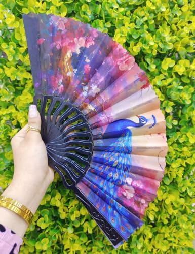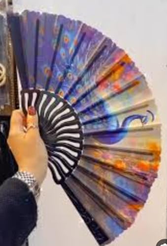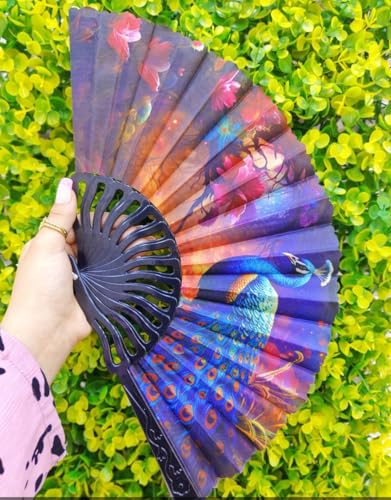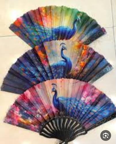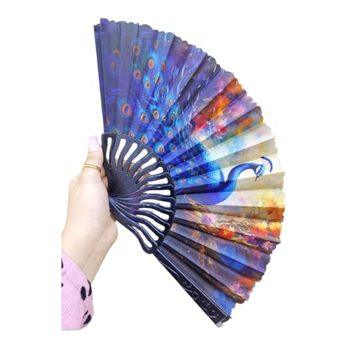 Generic - مروحة يدوية قابلة للطي من للنساء، على شكل طاووس صيني، ياباني، شرقي، آسيوي - لحفلات الزفاف، والرقص، والكنيسة، والحفلات، والهدايا (أزرق)