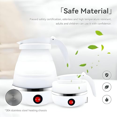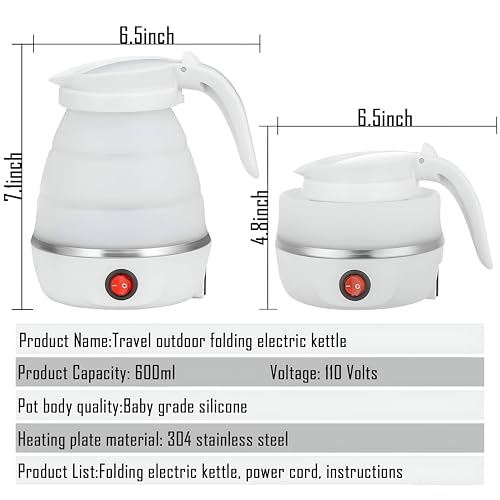Generic - غلاية ماء كهربائية قابلة للطي مبتكرة وعملية من السيليكون بقدرة 600 وات لتسخين سريع للماء في جميع المغامرات (لون أبيض)