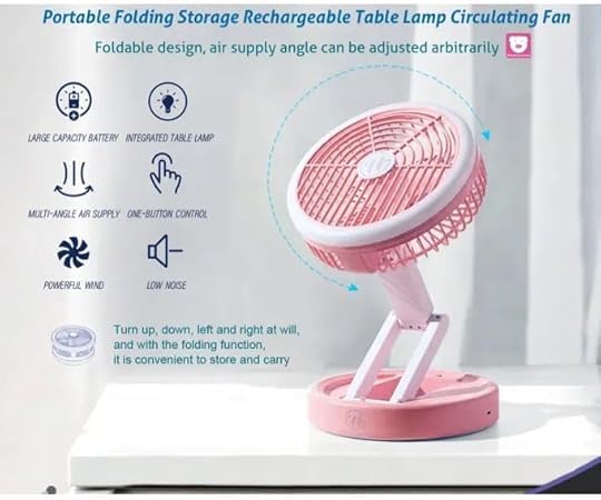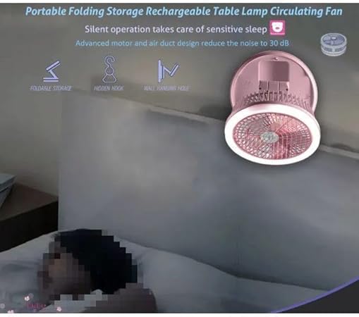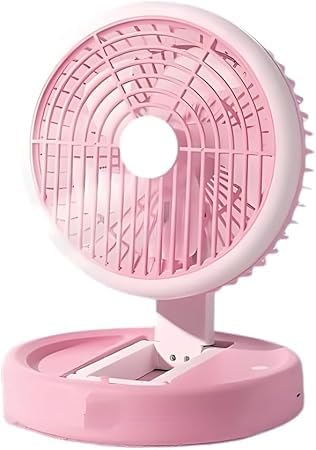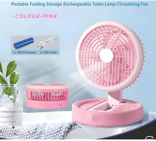 Generic - مروحة طاولة LED قابلة للطي، ٣ سرعات، مع إضاءة مدمجة وبطارية قابلة للشحن، تحكم باللمس، لون وردي