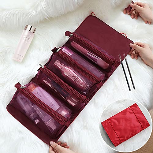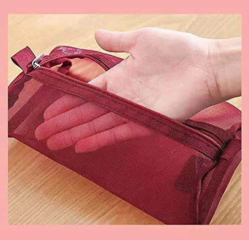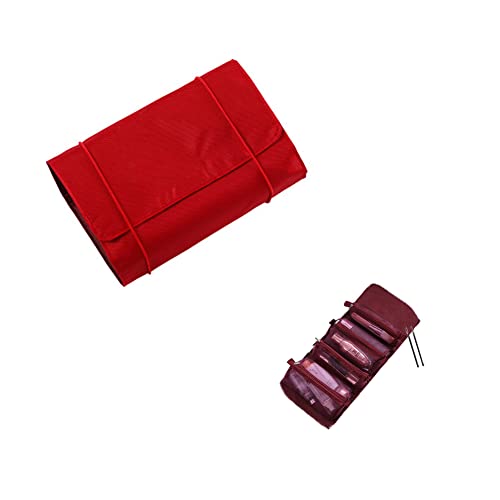 YangQian - شنطة صغيرة قابلة للطي شبكية لتنظيم مستحضرات التجميل والمكياج منظم سفر للنساء - بينك-اخضر-بني-احمر-ارجواني-اسود احمر نبيذي Small نايلون من يانج كيان