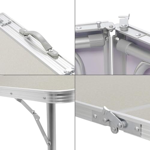 - ✔ الطاولة القابلة للطي متينة بحواف من الألومنيوم، خفيفة الوزن وقابلة للتعديل إلى 3 ارتفاعات مختلفة (الارتفاع: 55 / 62 / 69 سم). سطح العمل الكبير مقاس 120 × 60 سم مناسب لجميع الاستخدامات مثل سوق السلع المستعملة.