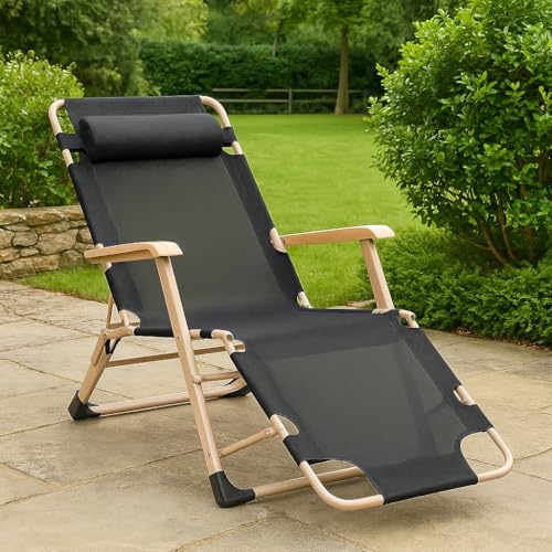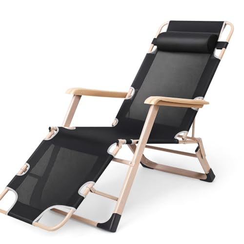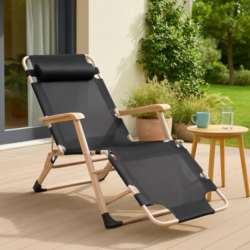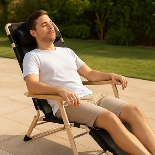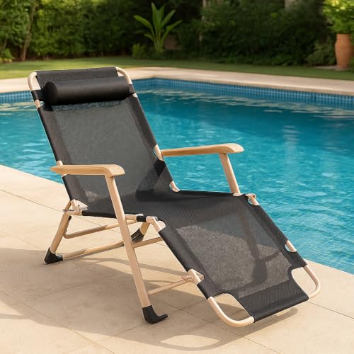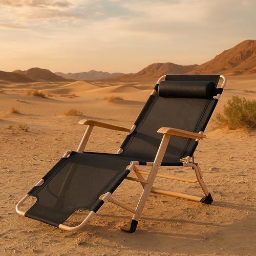 Generic - كرسي استرخاء قابل للطي مع مسند قدم ومسند رأس – كرسي شاطئ وحديقة متعدد الوضعيات – خفيف الوزن وسهل الحمل