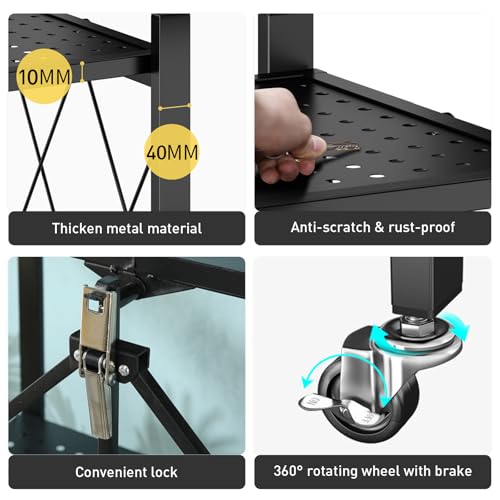 - 【هيكل قوي】مصنوع من حديد عالي الجودة مع طلاء من البولي كربونات، قوي ومتين. التصميم الواسع للأرفف المعدنية القابلة للطي من 5 طبقات قوي بما يكفي لتحمل الأحمال الثقيلة، ورف التخزين المتين هذا أقصى وزن للحمل هو 270 باوند. لا يوفر الارتفاع على كل طبقة مساحة إضافية فحسب، بل يحافظ أيضًا على منزلك نظيفًا ومنظمًا.