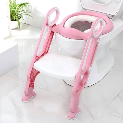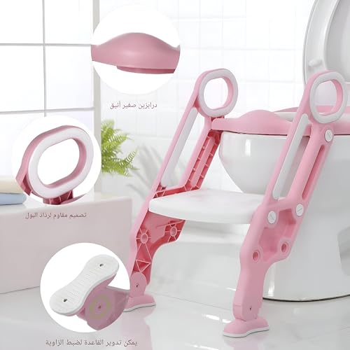- [مصنوع من مادة البولي بروبلين عالية الجودة] مقعد المرحاض للتدريب على استخدام المرحاض مصنوع من مادة البولي بروبلين الصديقة للبيئة، وهي قوية ومتينة. الوسادة الناعمة المقاومة للماء آمنة ومريحة. توفر الأقدام القوية غير القابلة للانزلاق الأمان والاستقرار لطفلك.