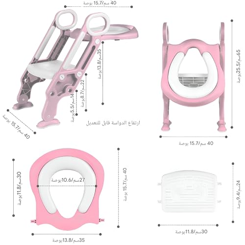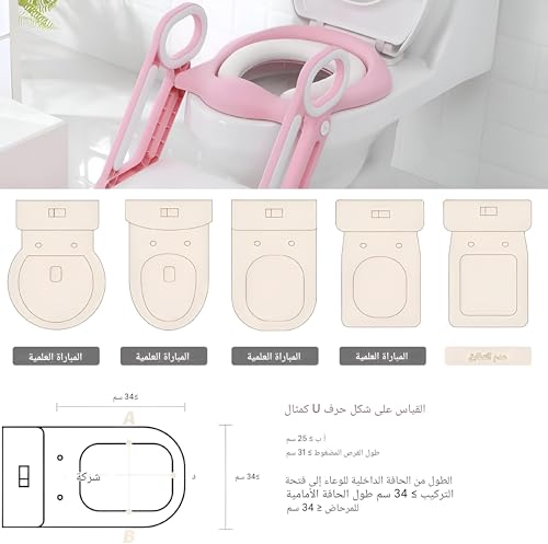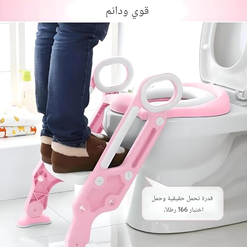 - [يسهل على طفلك استخدامه] تم تصميم مقعد المرحاض مع درابزين مزدوج ودواسة عريضة حتى يتمكن طفلك من الصعود والنزول بشكل أسرع وأكثر ثباتًا. أقصى حمل على القدمين: 50 كجم
