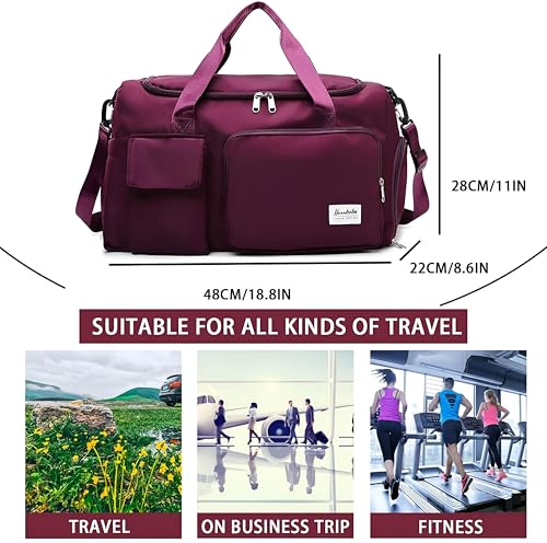 - تتميز حقيبة السفر القابلة للطي متعددة الاستخدامات هذه بتصميم قابل للطي يزيد من توفير المساحة، مما يجعل من السهل حملها وتخزينها عند عدم الاستخدام، بأبعاد 50 سم طولًا و25 سم عرضًا و28 سم ارتفاعًا، مما يجعلها مناسبة للطائرة للسفر المريح أو زيارات صالة الألعاب الرياضية.