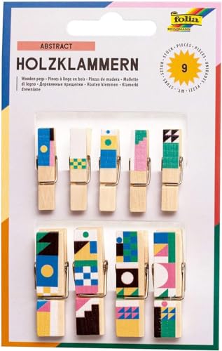 - مشابك خشبية بزخارف بنمط تجريدي، لتثبيت الملاحظات والصور