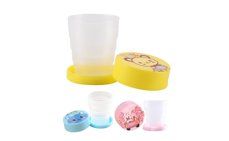 Generic - كوب ماء بلاستيكي قابل للطي، متعدد الألوان،3 قطع صغير قابل للانضغاط، للمدرسة، 7 سم، تصميم كرتوني من فولوروا