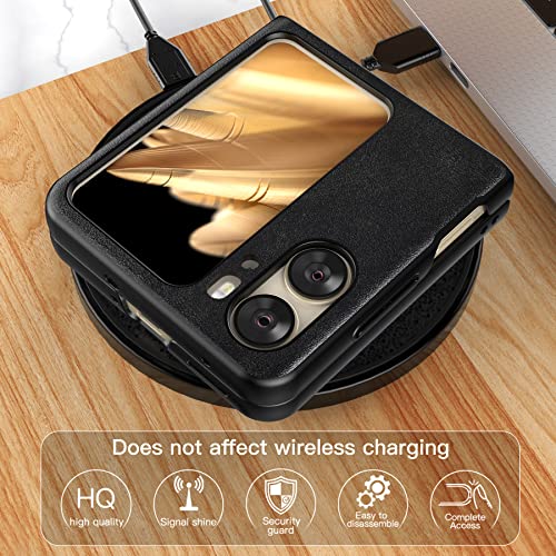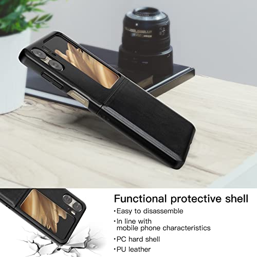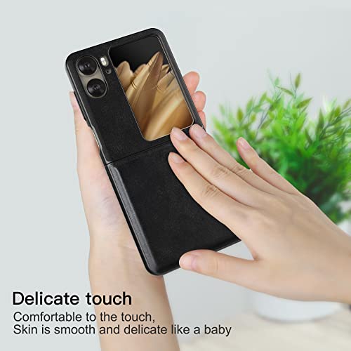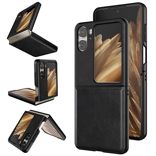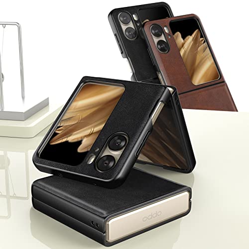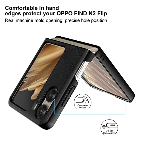 Foluu - جراب لهاتف اوبو فايند N2 فليب بشبكة الجيل الخامس 5G من فولو الجلد N2 5G غلاف البولي كربونات الصلبة وجلد صناعي بتصميم رفيع حماية متين لاوبو N2 2023 اسود