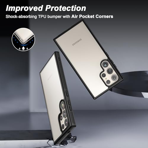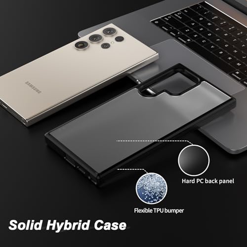 Foluu - جراب سامسونج جالاكسي S24 الترا 2024 من فولو، ظهر صلب من البولي كربونات واكصدام ناعم من البولي يوريثين المقاوم للحرارة، مقاوم للصدمات والخدش لموبايل سامسونج جالاكسي S24 الترا شبكة 5G 2024 (أسود)