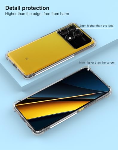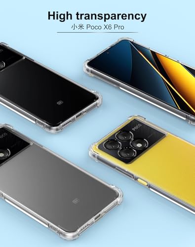 Foluu - جراب شفاف بتصميم نحيف مقاوم للخدش بزوايا معززة من المطاط والبولي يوريثين للحرارة غطاء واقي السيليكون الناعم لموبايل شاومي بوكو X6 برو شبكة الجيل الخامس 5G 2024 كريستالي