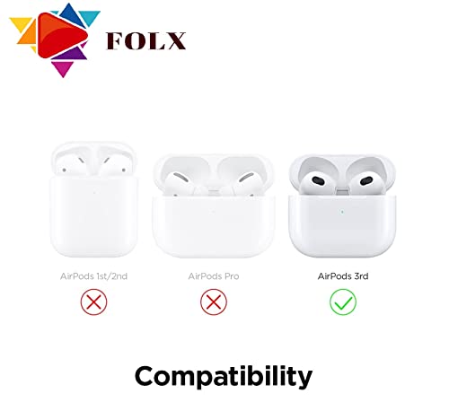 FOLX - جراب حماية من السيليكون الناعم FAC80 لسماعات ايربودز الجيل الثالث فولكس بتصميم ثلاثي الابعاد مضاد للصدمات مع حلقة مفاتيح معدنية مضادة للضياع متوافق ابل زهري ستار-باج