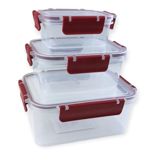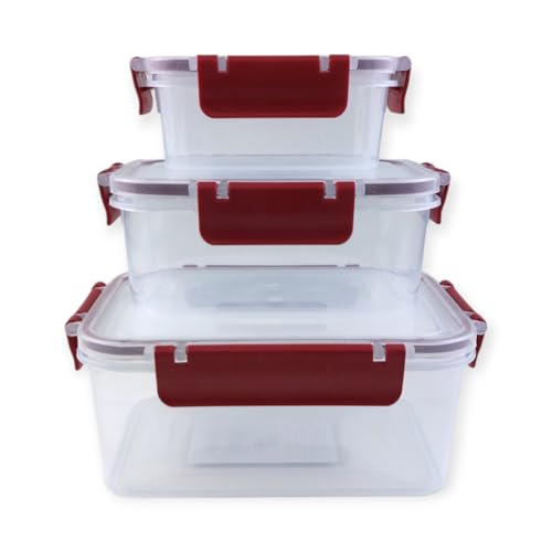 Generic - علبة تخزين طعام مستطيلة من فولي لايف - 3 قطع - احمر