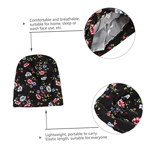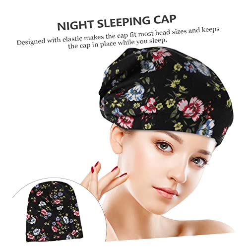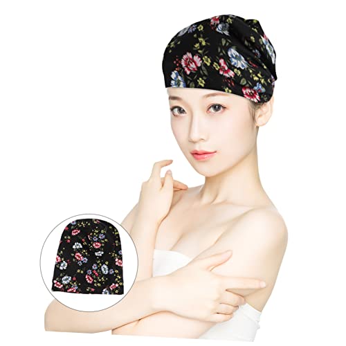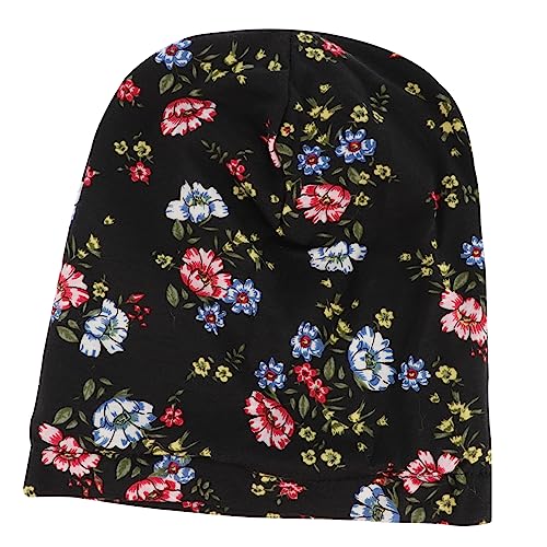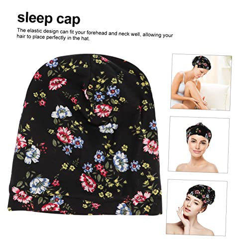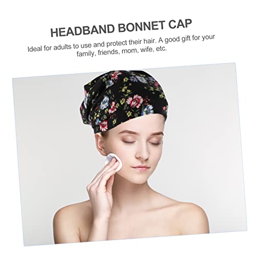 FOMIYES - فوميز. قبعة العلاج الكيميائي العصرية، قبعات قطنية باندانا سوداء، عمامة شعر للنوم للنساء، قبعة ليلية مرنة، قبعة تجميل ذات حافة عريضة، قطعة واحدة