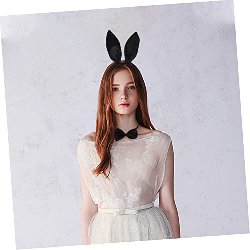 FOMIYES - طوق رأس وحلقان بتصميم أذني أرنب للنساء من فوميز، طوق رأس من الساتان للنساء، أزياء تنكرية على شكل أذني أرنب من القطيفة، مجموعة إكسسوارات أزياء تنكرية، مجموعة واحدة