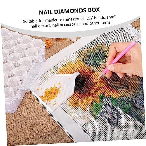 FOMIYES - فوميز. مجموعة صندوق تخزين شفاف مزين بالالماس لتزيين الاظافر والخرز من حجر الراين، حاويات بلاستيكية محمولة لتخزين الاشياء الصغيرة والاحجار الكريمة والترتر، مجموعة واحدة