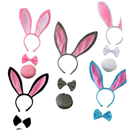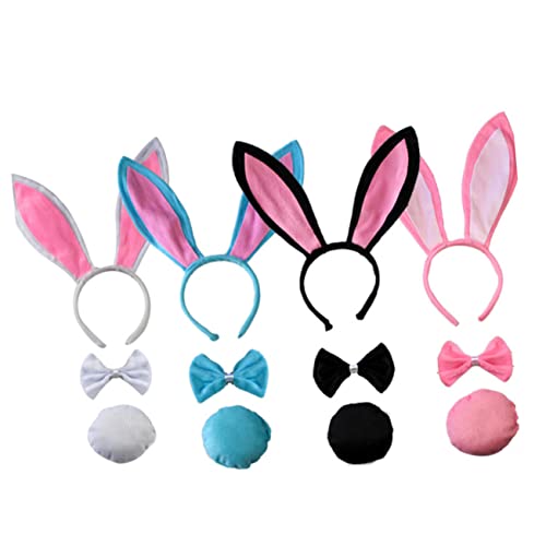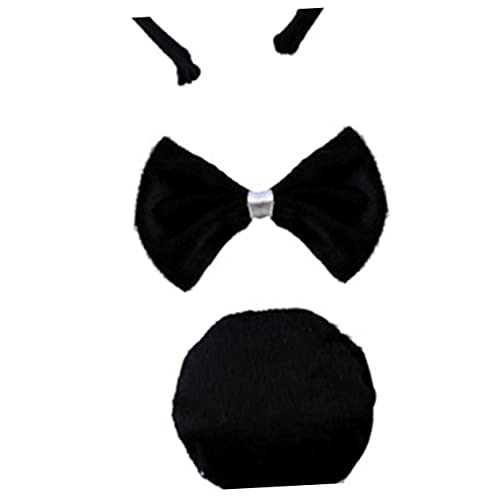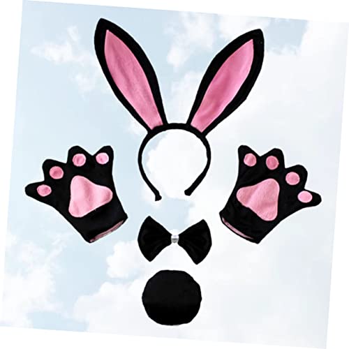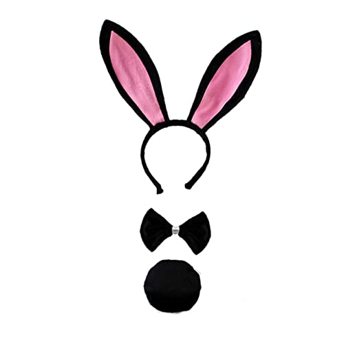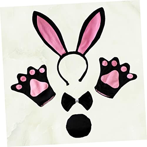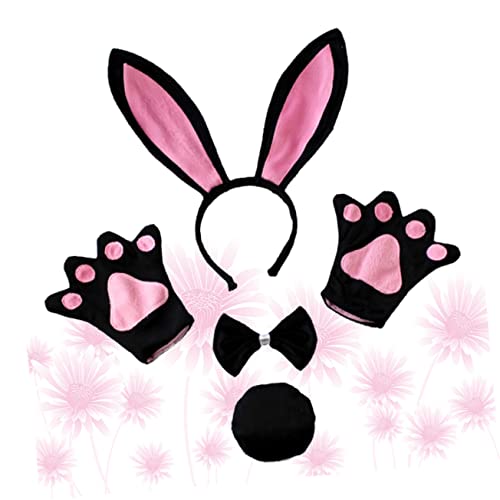 FOMIYES - فوميز. مجموعة ربطة عنق وعصابة راس للنساء بتصميم اذني ارنب تنكرية وقفازات للاطفال من مستلزمات الحفلات بتصميم ذيل رائع وربطة عنق على شكل حيوان، أسود