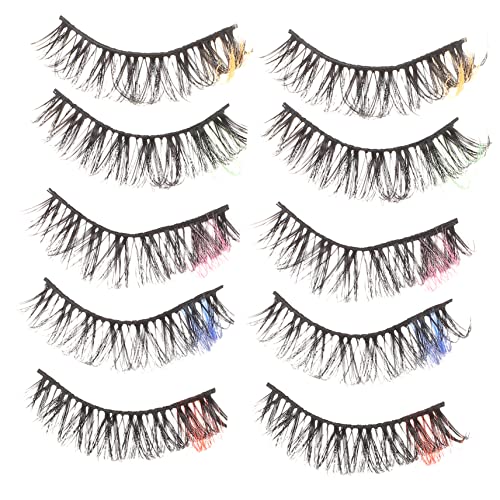 FOMIYES - وصلات المكياج الروسية المجعدة لصالونات التجميل من فوميز، رموش شريطية صناعية مثالية للحفلات التنكرية، وصلات رموش ملونة مثل الرموش الحقيقية الناعمة، 10 أزواج