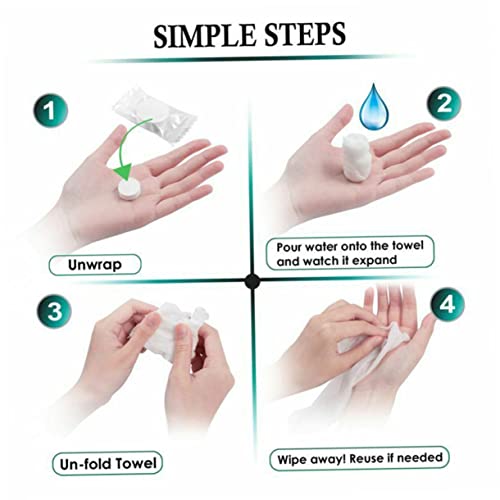 FOMIYES - فوميز. 100 قطعة من مناشف مضغوطة للاستعمال مرة واحدة، مناشف تنظيف الوجه للاستعمال مرة واحدة، مناديل وجه للاستعمال مرة واحدة، مناشف تنظيف الحمام، مناشف للسفر، منشفة للاستخدام الخارجي، ابيض