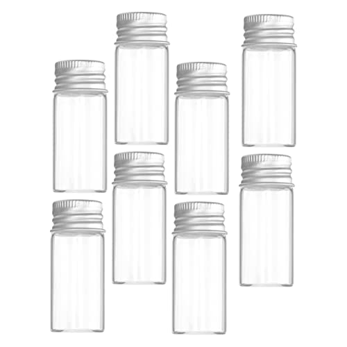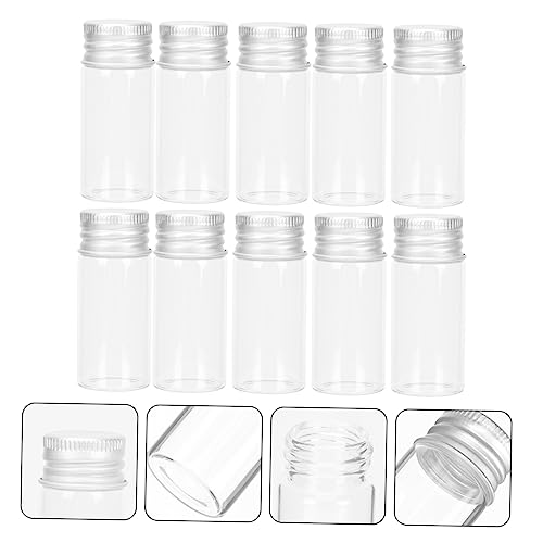 FOMIYES - فوميز. زجاجات حبر صغيرة للزيوت العطرية من 10 قطع، موزع حبوب الدواء والشامبو السائل، زجاجة كاشف كيميائي، زجاجة موزع عطور، حاوية شفافة مع غطاء زجاجي، زجاج، ألومنيوم
