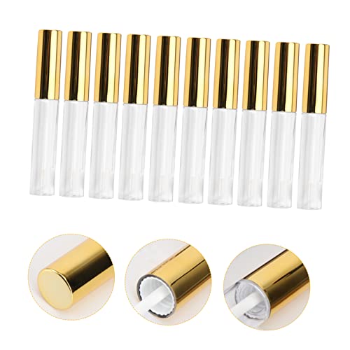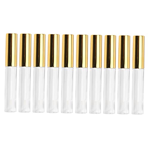 FOMIYES - فوميز. مجموعة انابيب ملمع شفاه صغيرة من 10 قطع، انابيب ملمع شفاه صغيرة مع عصا، انابيب ملمع شفاه فارغة، انبوب دائري للشفاه ومرطب الشفاه، غطاء طلاء ذهبي لمستحضرات التجميل، بلاستيك