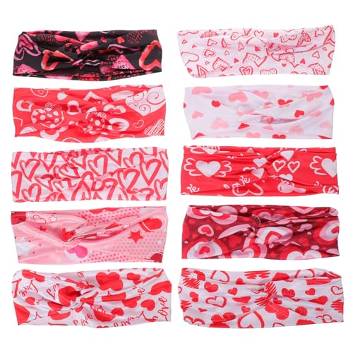 FOMIYES - فوميز. 10 قطع من شريط راس على شكل قلب لعيد الحب، شريط راس للتمرين واليوغا، شريط راس ملتوي قابل للتمدد لممارسة الرياضة والجري واليوغا، 10 قطع