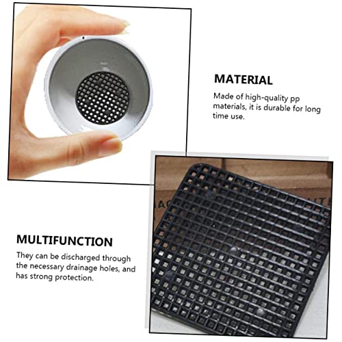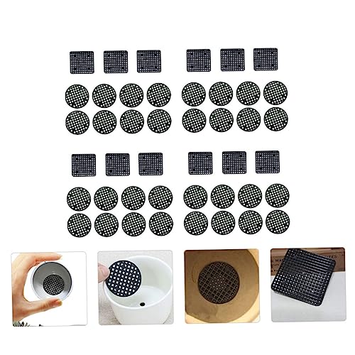 FOMIYES - فوميز. 120 قطعة من حصيرة وعاء الزهور بفتحة سفلية لاصيص الزهور واصيص الزهور بفتحات شبكية لحوض المطبخ وواقي من الرذاذ من الطين مع فتحات تصريف دائرية من بلاستيك البولي بروبيلين، أسود