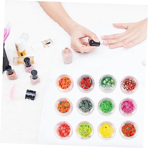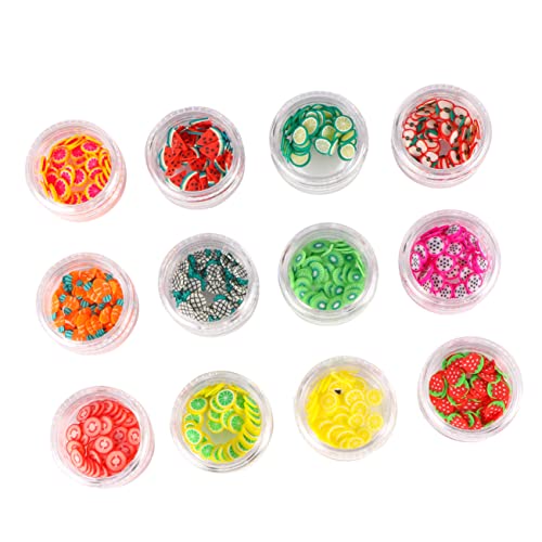 FOMIYES - فوميز. 12 قطعة من ملصقات الاظافر ثلاثية الابعاد من الفخار الناعم لتزيين اليد وكتب قصاصات الاظافر وشرائح تزيين الاظافر وشرائح فاكهة وطين البوليمر ودفتر القصاصات