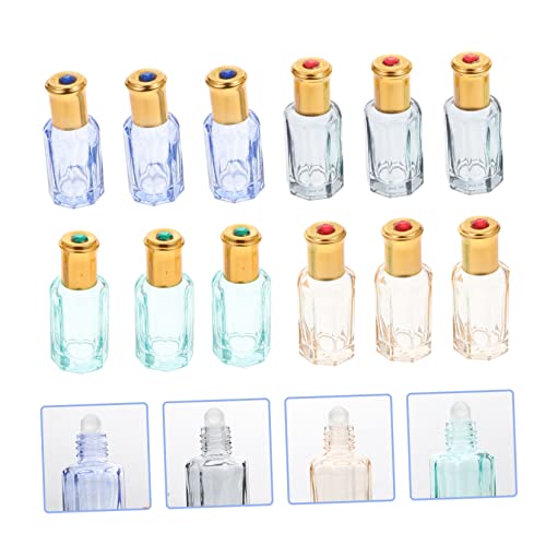 FOMIYES - فوميز. 12 قطعة من زجاجات دوارة مثمنة الاضلاع للسائل، زجاجة عطر صغيرة للسفر، حاوية للعطور، حاويات فرعية للزيوت العطرية، زجاجات فارغة لمستحضرات التجميل، كريستال