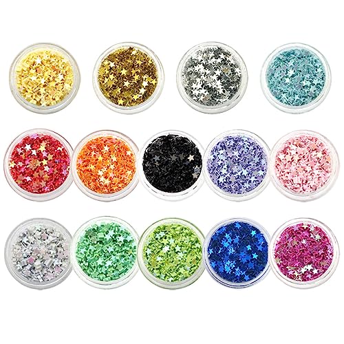 FOMIYES - فوميز. 14 صندوقًا من دلايات الاظافر على شكل نجمة ونجوم لامعة للاظافر، دلايات تزيين الاظافر ونجوم الترتر