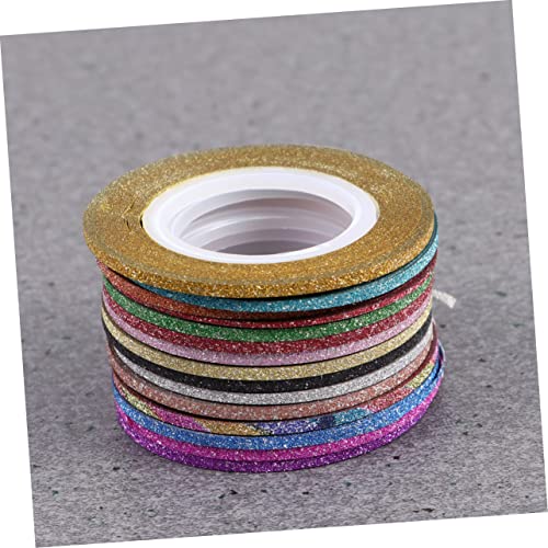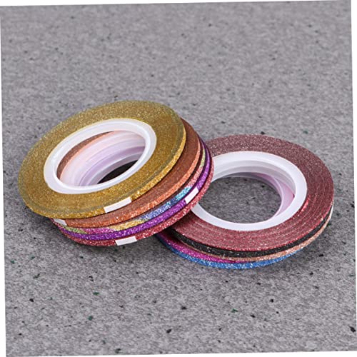 FOMIYES - فوميز. 14 لفة من ملصقات تزيين الاظافر اللامعة لتزيين الاظافر وخطوط خطوط معدنية واطراف اظافر لاصقة لتزيين الاظافر والرمال