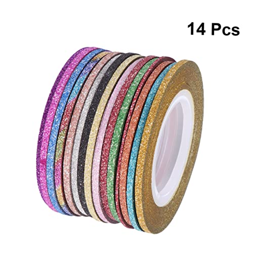 - خطوط ملصقات الأظافر: 14 لفة لامعة لفن الأظافر خط ملصقات الأظافر، مجموعة ملصقات الأظافر، أداة مانيكير يدوية للنساء والسيدات