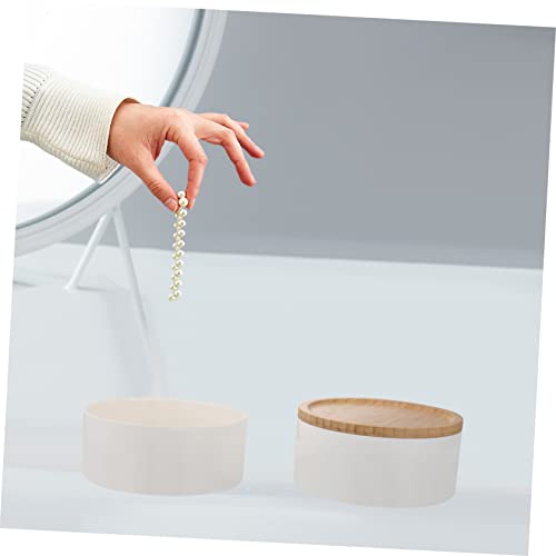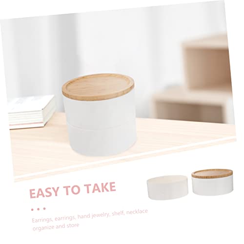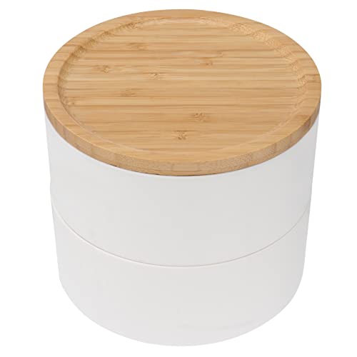 FOMIYES - صندوق مجوهرات بغطاء خيزران من فوميز، صينية مجوهرات كلاسيكية، صندوق مجوهرات كلاسيكي، منظم مجوهرات، حافظة منظمة للسلاسل، صندوق خواتم عتيق، علبة تخزين أساور من الخيزران، أبيض